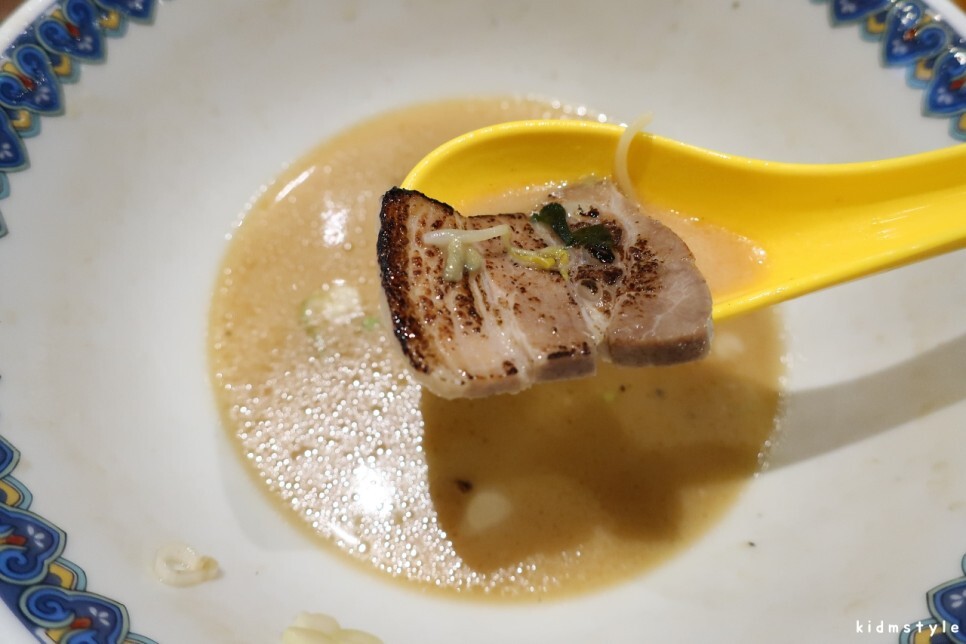 면은 잘 삶아졌다. 내가 좋아하는 나가하마 만게츠나 사사야키 같은 곳의 자가제면 면발의 꼬들꼬들한 면보다는 아쉽지만 그래도 먹을만하다.