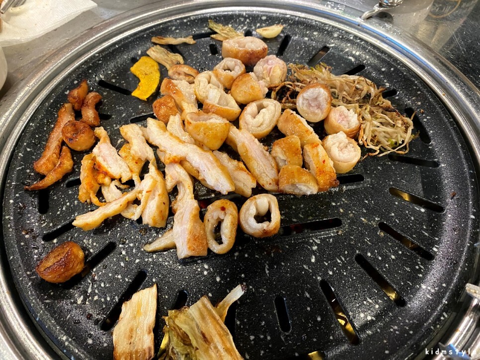 막창과 삼겹살을 같이 먹을 수 있는 곳이 잘 없는데 아주 좋다.