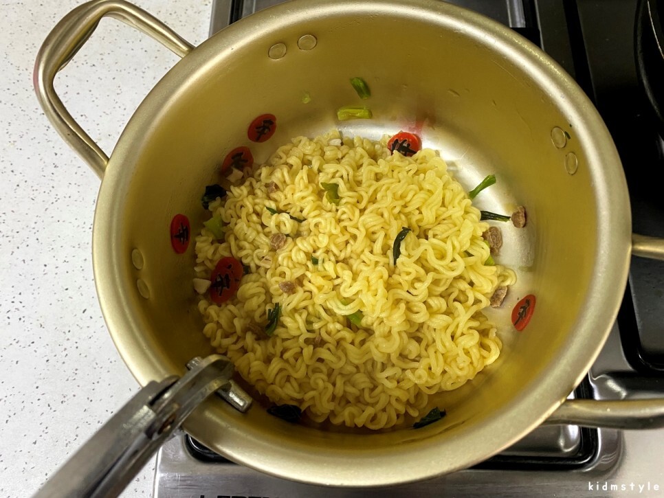 끓는 물에 건더기스프를 넣고 바로 면도 넣어준다.