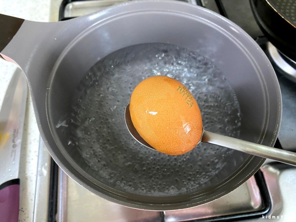 달걀을 하나 삶아준다. 끓기 시작하고 9분 정도 삶는다. 반숙과 완숙의 중간이 된다.