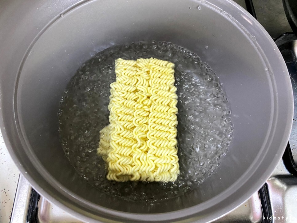 라면 사리도 빠질 수 없으니 반으로 부수고 반만 끓여준다.