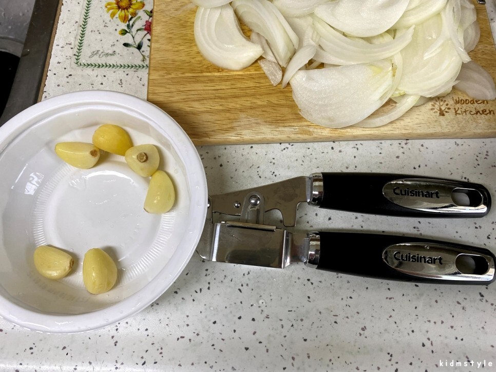 다진 마늘도 다지기에 넣어서 힘껏 눌러준다. 마늘 넣으랴 사진 찍으랴 바쁘다.