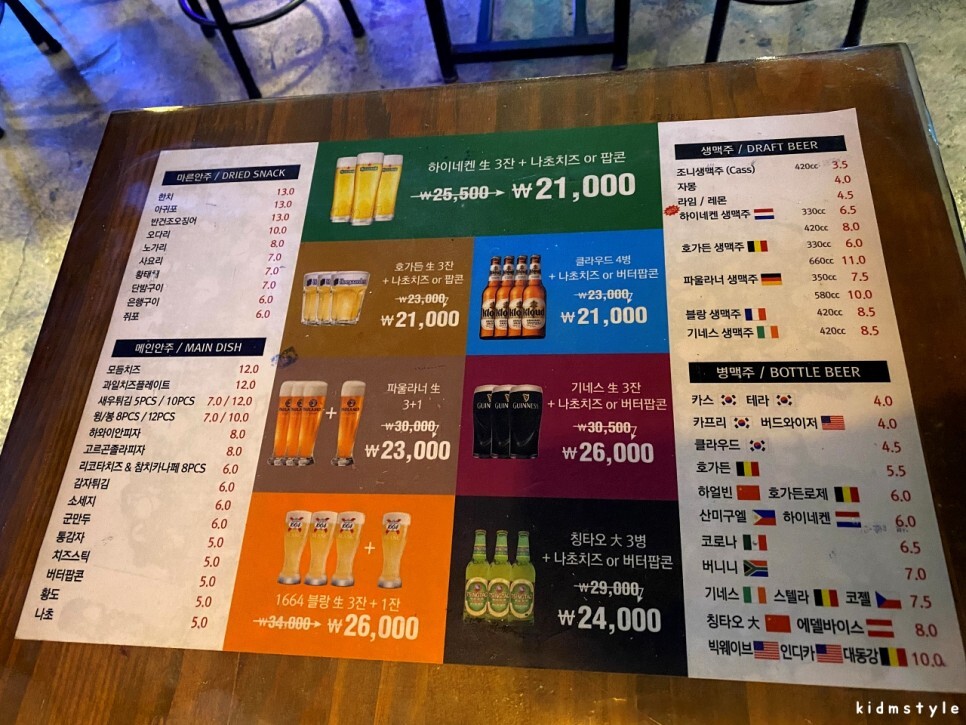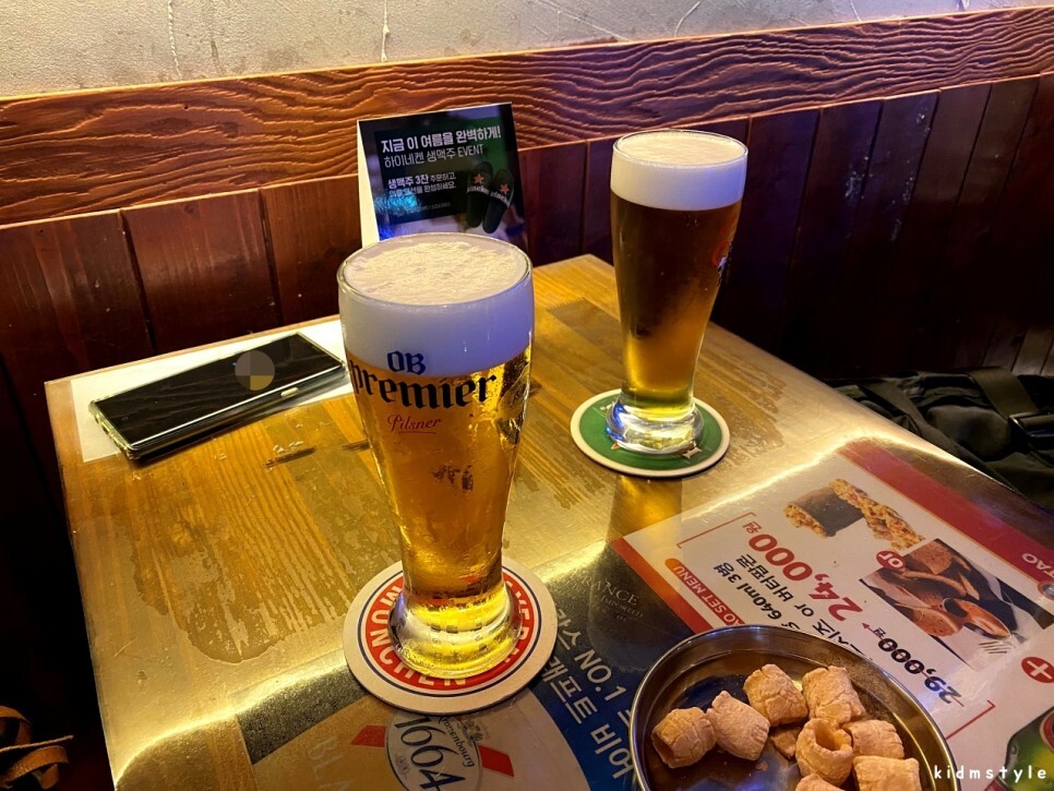 우리가 주문한 저온 숙성 생맥주, 420cc에 3,500원