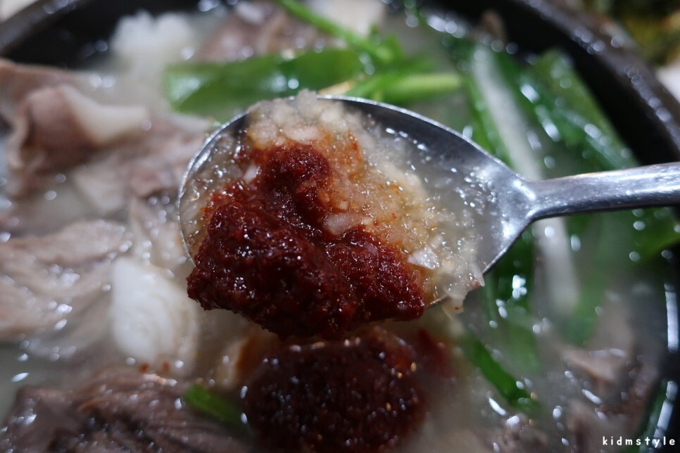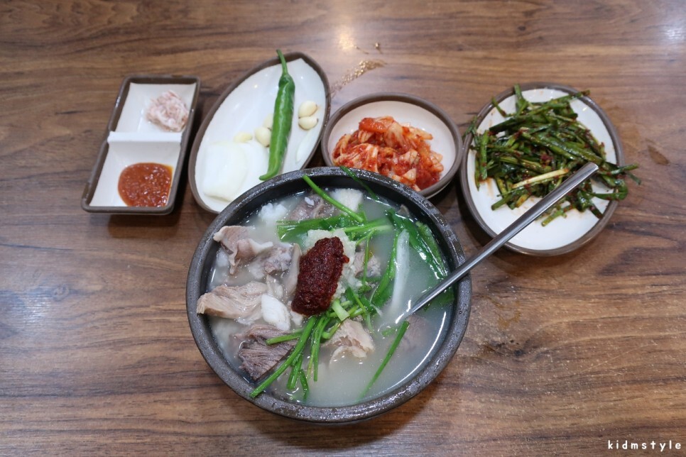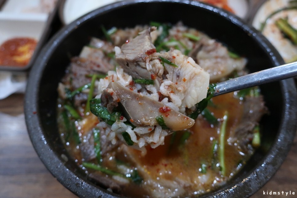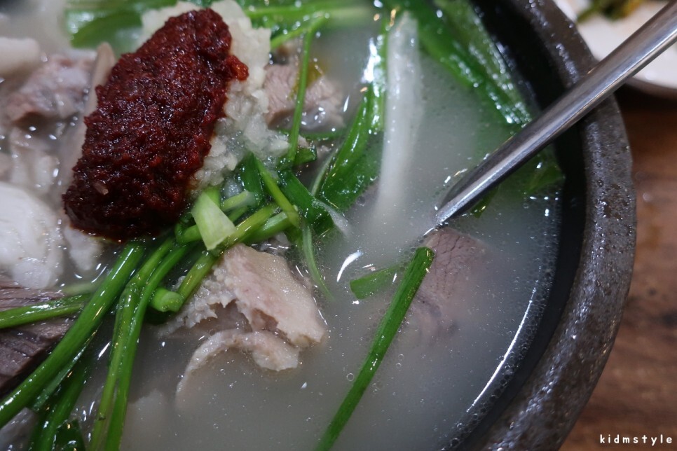 부추의 숨이 다 죽어있다. 좀 짜다. 여름이라 그런 건가? 다른 집들은 여름이라도 신선한 부추를 맛볼 수가 있던데 말이다. 최근에 갔던 영도 재기돼지국밥이나 부산역 대건명가 같은 곳은 재료가 신선했다.