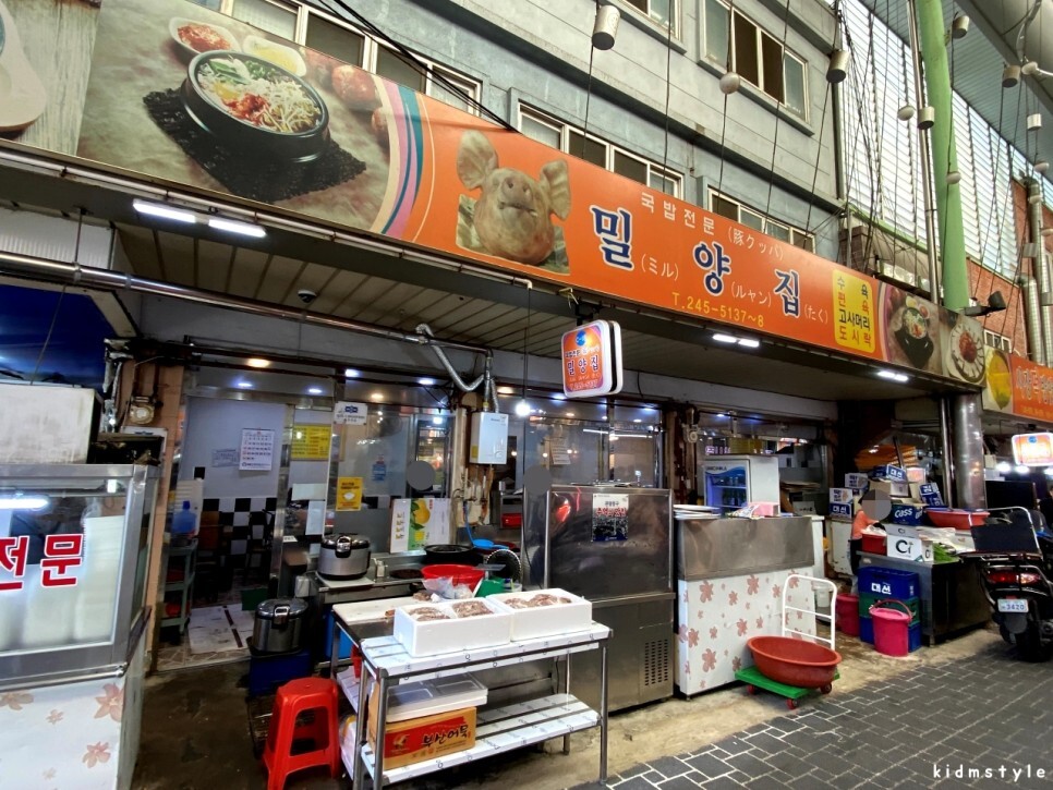 외근하면서 점심을 먹기로 했는데 메뉴를 못 정했다. 무엇을 먹으면 좋을까 고민을 하다가 오래간만에 돼지국밥을 먹기로 한다. 오래간만에 가는 곳으로 정했다. 부평깡통시장에 있는 밀양집이다.