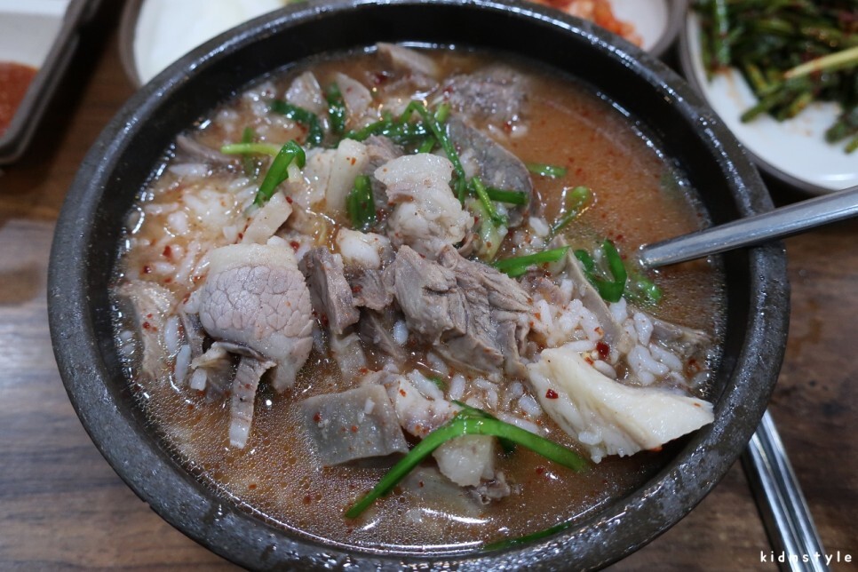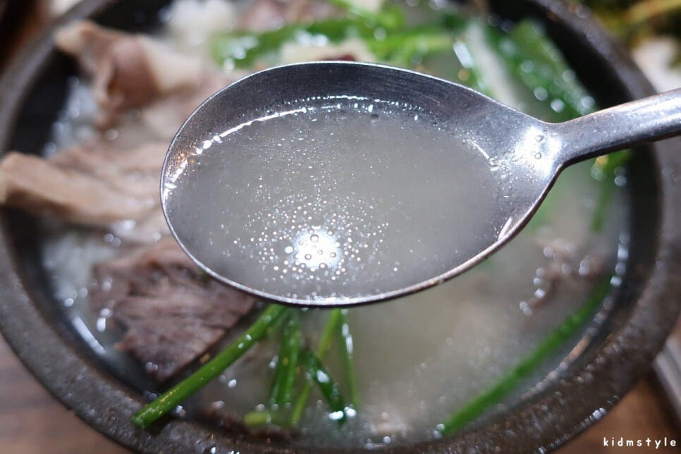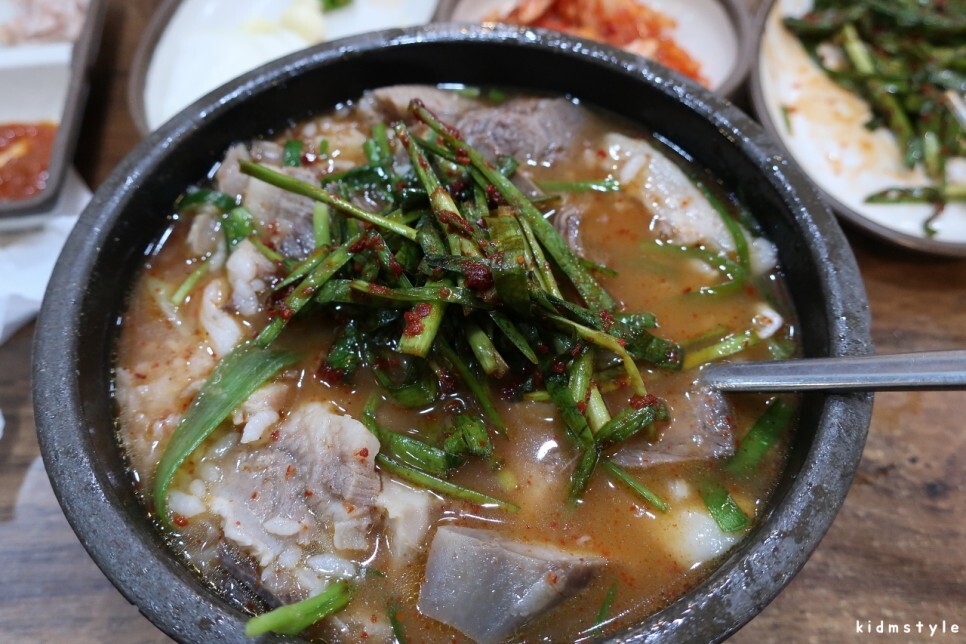 직원들이 그리 친절하지 않다. 그렇다고 불친절하다고 하기에는 좀 그렇다. 시장통 오래된 집이라서 그렇다고 생각하는 게 마음이 편하다. 이런 부분을 관광객들이 접한다면 불친절하다고 평가할 것이 분명하다. 실제로 네이버 마이플레이스 후기에 불친절하다는 이야기가 많더라. 엄청 더운 날이었는데 에어컨이 빵빵하지는 않다. 국밥부터 덩그러니 나왔다. 오래간만이라 맛이 기대가 되는구먼.