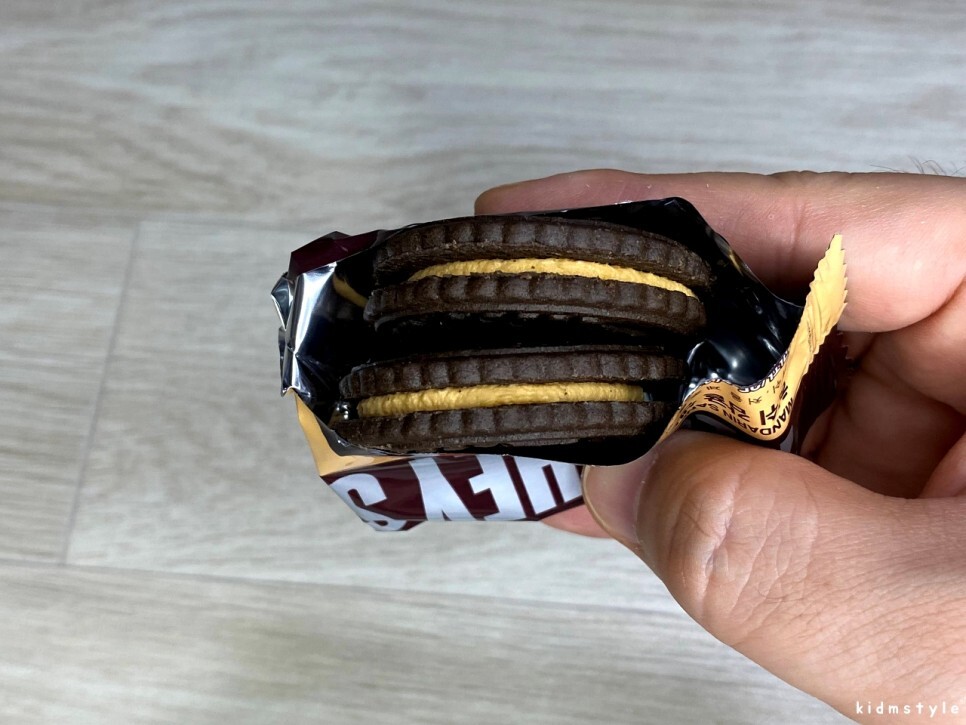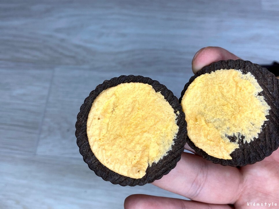 하나를 까서 맛보자. 얼핏 보면 오레오와 닮았다. 하지만 속이 노란색이다.