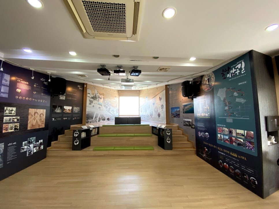 발열 체크와 안심콜을 하고 이바구공작소 내부로 들어가 본다. 넓은 계단식 공간 양옆으로 다양한 이야기가 펼쳐진다. 이 공간은 평소에는 관람의 장소로 이용되고 특별한 시간에는 작은 강연이나 공연 등을 진행할 수 있는 일석이조의 공간이다. 그리고 지역 주민들의 사랑방 같은 역할도 한다.