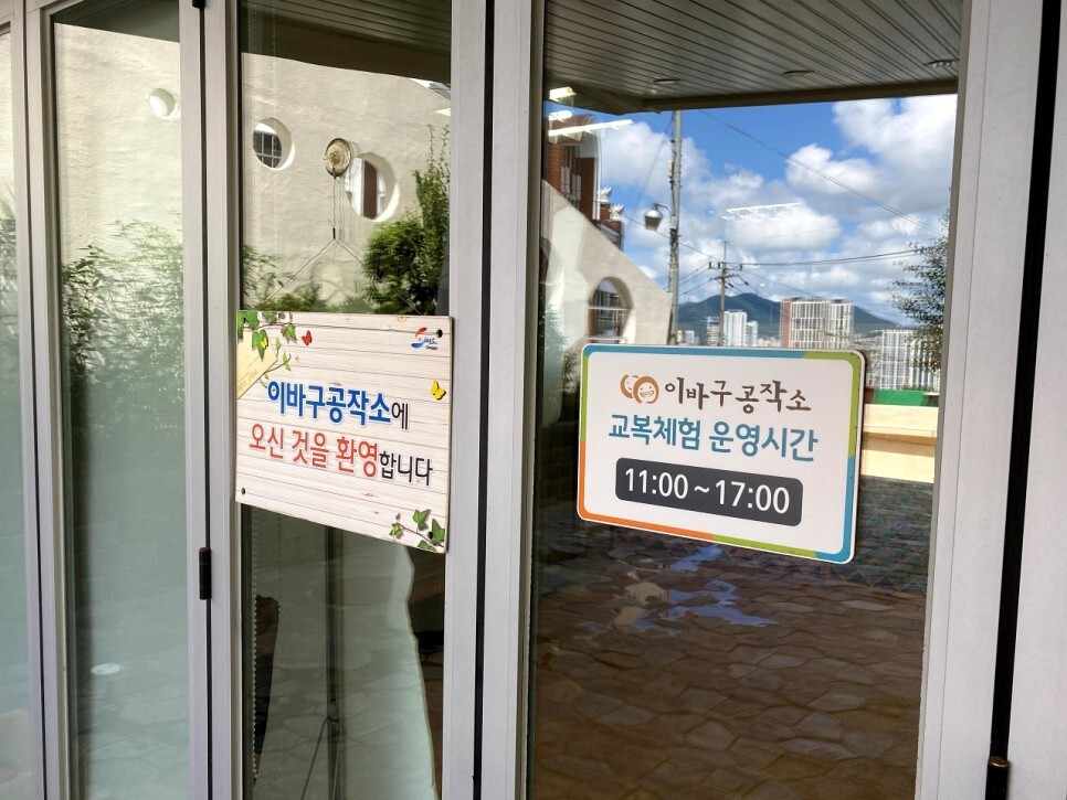 지금은 더운 여름이라 뜸하지만 봄, 가을, 겨울에는 아주 인기가 많은 옛날 교복 체험이 가능하다. 직원분이 친절하게 이것저것 설명해 주신다. 이바구공작소의 운영은 지역 주민들이 주축이 되어 일자리가 창출되고 운영되므로 다양한 이야기를 듣기도 좋다. 교복 체험을 할 때 사진도 직접 찍어주신다.