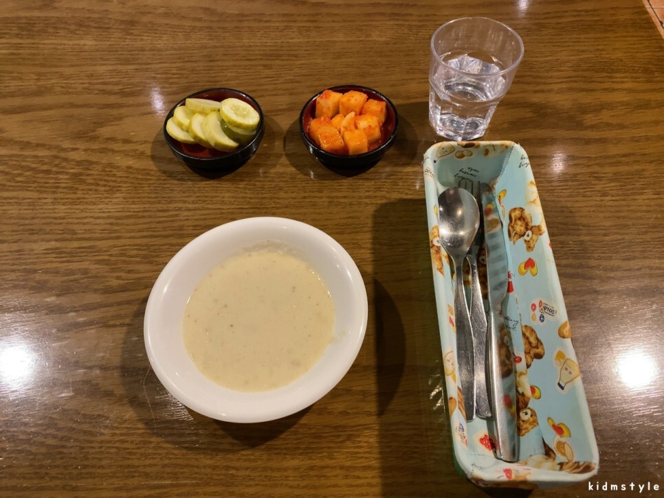 기본으로 깔리는 세팅이다. 수저 등이 깔리는 모양새가 참 정겹다.
