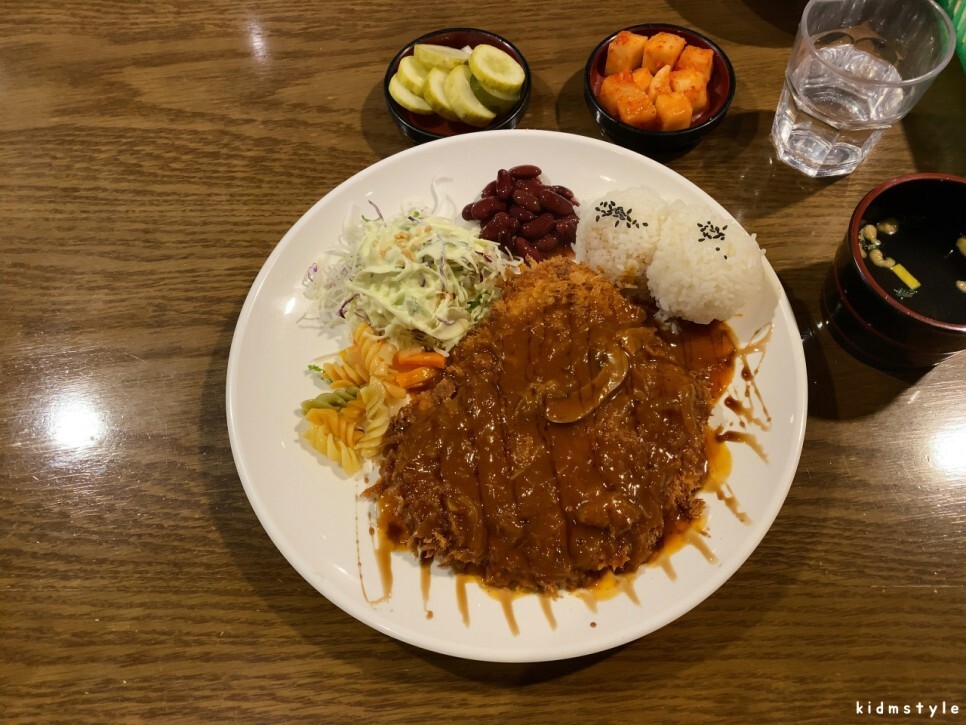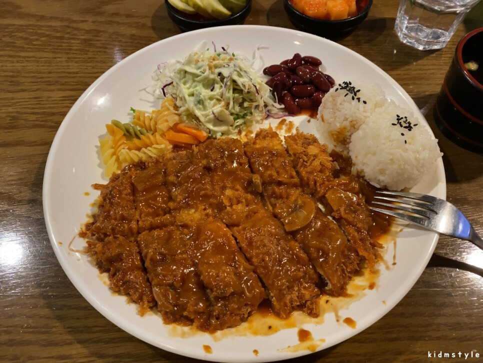 소스 데코가 적당히 되어있는 돈까스인데 소스의 양이 그리 많지는 않다. 내 기준으로는 소스의 양이 적다.
