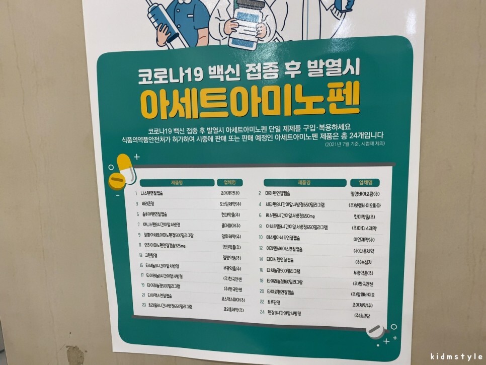 발열 시 먹으면 되는 약이다. 아세트아미노펜 계열로 식품의약품안전처가 허가하여 판매하는 24개이다. 나는 24번 펜잘 8시간 이알서방정을 미리 구입해두었다.