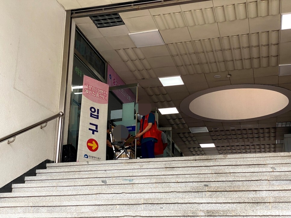 부산 중구 코로나19 백신 예방접종센터이다. 10시까지인데 여유 있게 9시 59분에 도착.