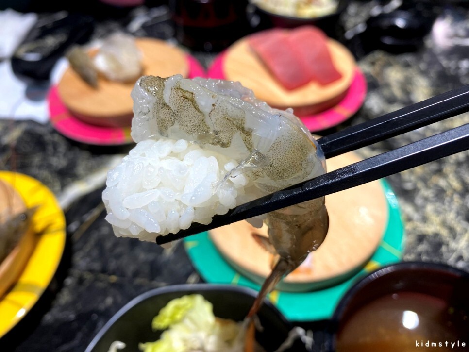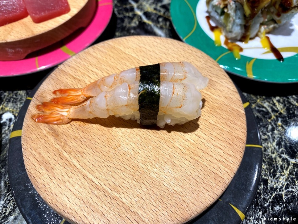 새우초밥의 종류가 여러 가지이다. 먼저 단새우를 맛본다.