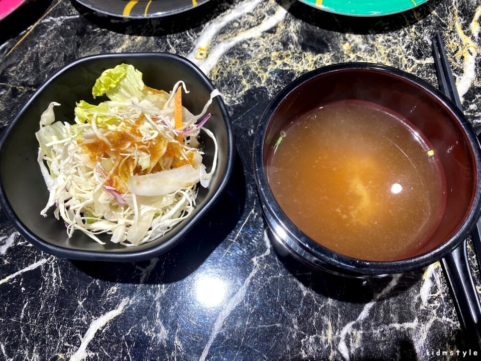 기본으로 제공되는 양배추 샐러드와 미소된장국이다. 된장국의 간이 좋아서 몇 번 리필해 먹게 된다.