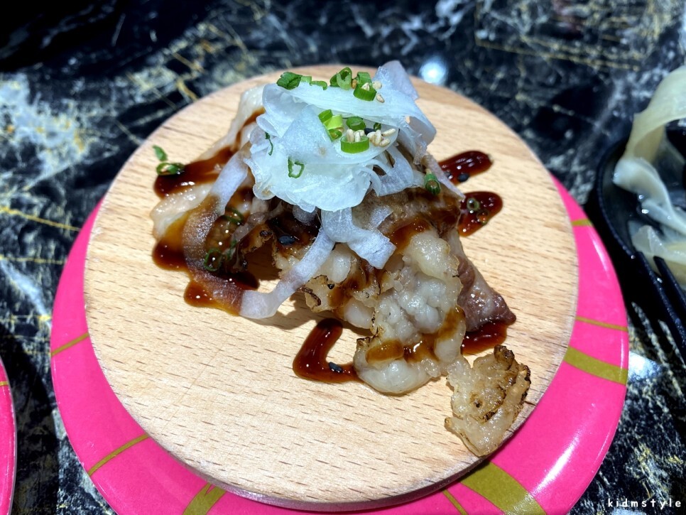 회전 레일에서 먼저 롤초밥을 하나 집었다. 오래간만에 맛보는 롤이다. 맛이 괜찮다.