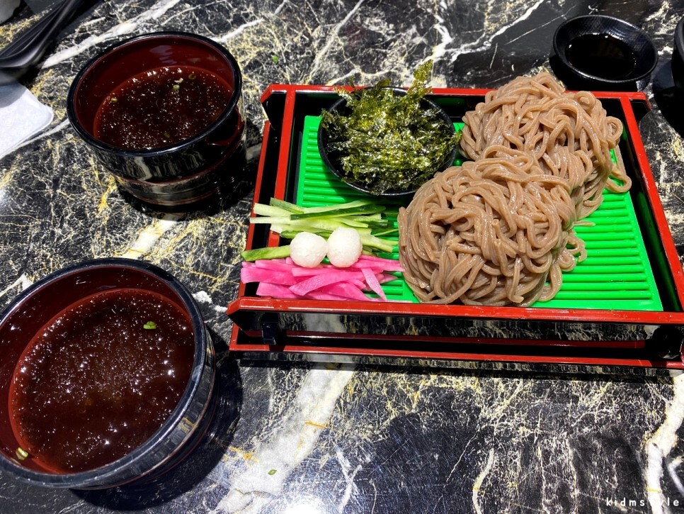 초밥을 적당히 먹고 나서 시원한 메뉴를 하나 주문해본다. 냉모밀이다. 5천 원인데 둘이서 먹기에 딱 좋다.
