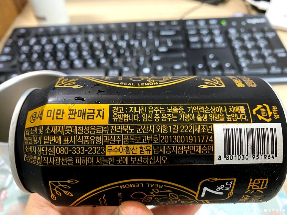 혹시 순하리 레몬진 구입을 염두에 두고 4.5%와 7% 둘 중에 고민을 하고 있다면 무조건 7%를 구입할 것을 추천한다. 7도짜리가 술 같다.
