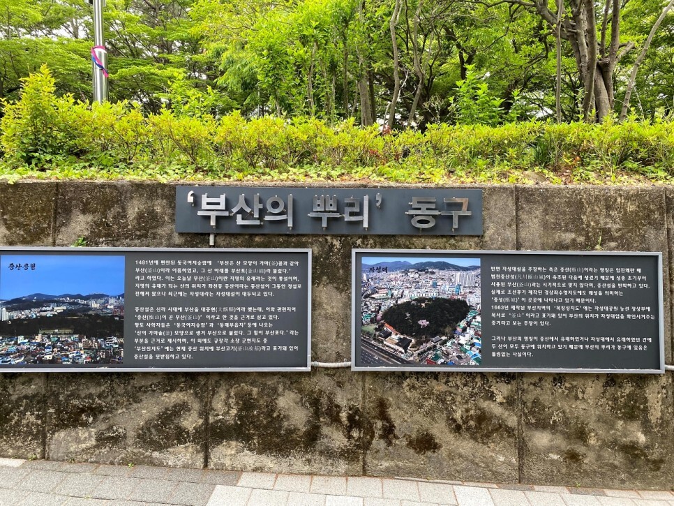 공원 입구로 향하다 보면 '부산의 뿌리' 동구에 대한 설명을 찾을 수 있다.