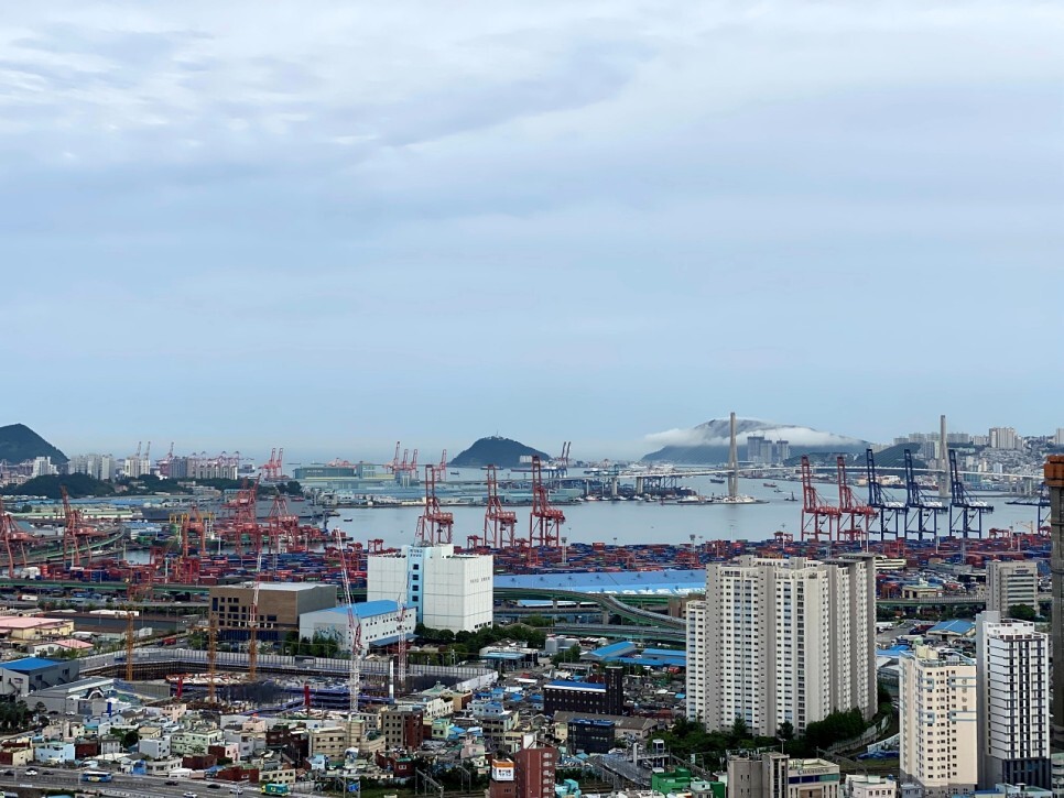 전망대에서 바라본 부산 앞바다의 아름다운 풍경이다.