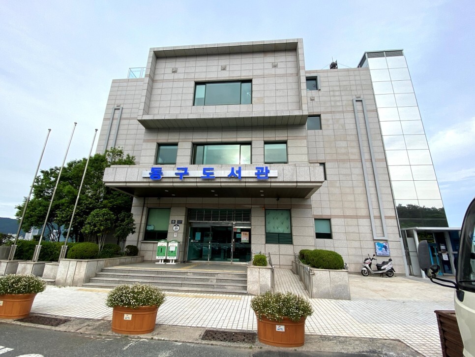 공원 입구에서 왼쪽으로 고개를 돌리면 바로 보이는 동구도서관이다. 이곳 옥상에 참 멋진 곳이 있어서 소개해 보려고 한다.