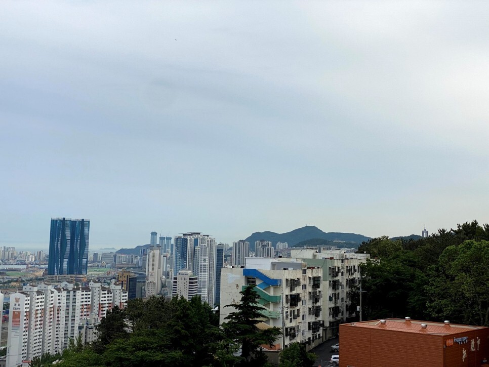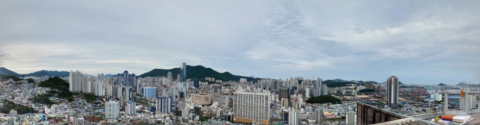 책마루 전망대 위에서 바라본 부산의 아름다운 풍경 파노라마