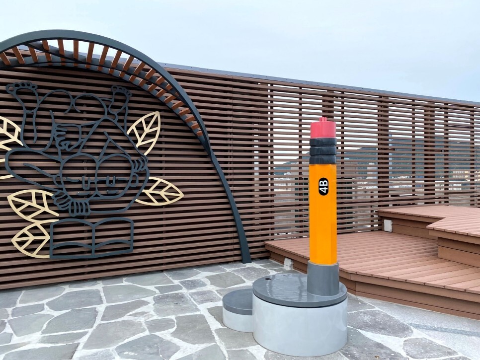 한쪽에는 귀여운 연필 모양의 조형물이 반겨준다.