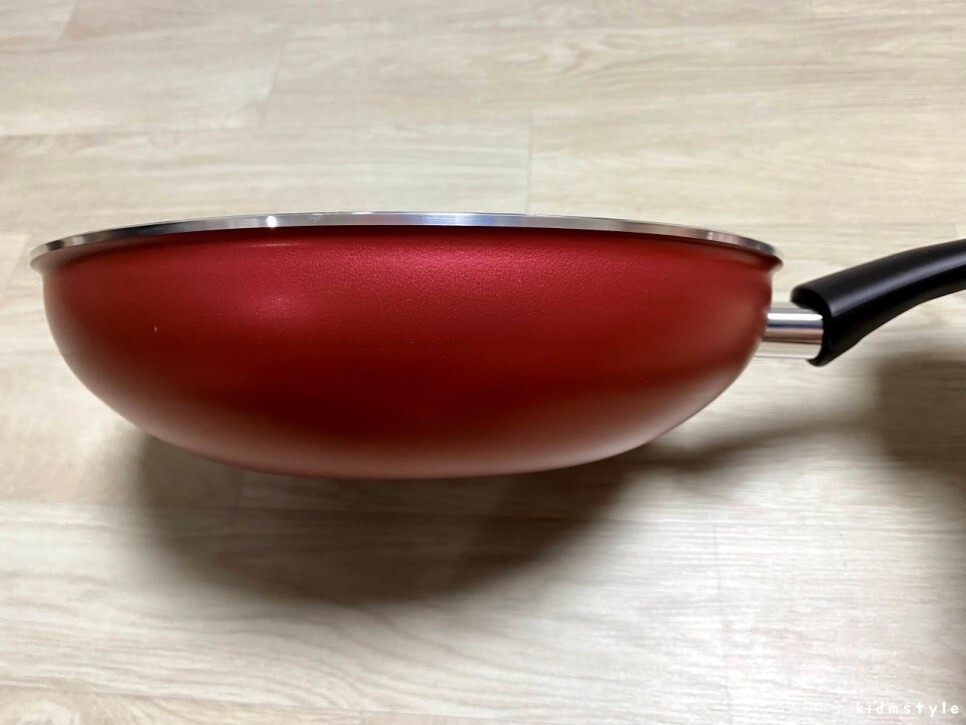 이 제품은 볶음팬 28cm라는 이름을 달고 있지만 팬의 깊이가 타사 궁중팬 제품에 비해 그리 깊지 않다.