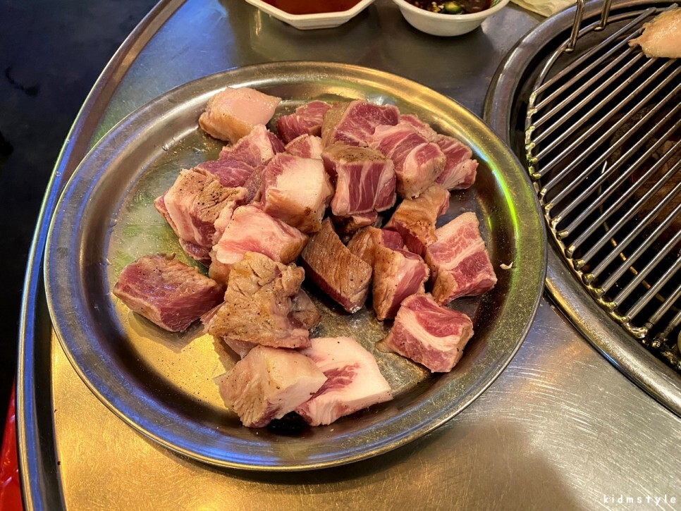 고기를 먹다 보니 껍데기가 당긴다. 1인분을 주문했다. 양념이 잘 되어있어서 껍데기가 꽤 맛있다.
