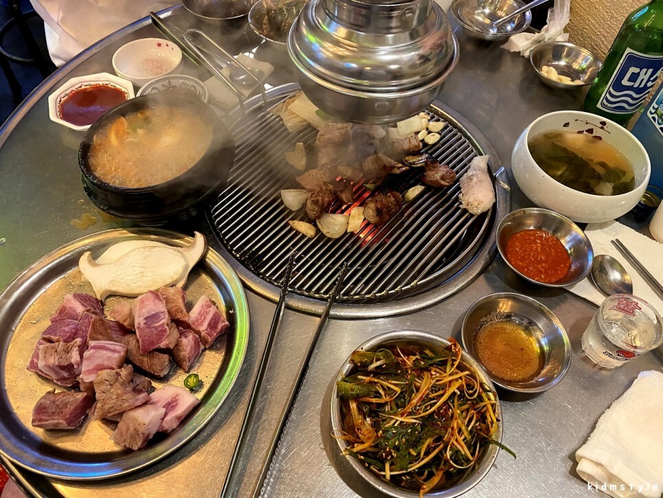 고기를 열심히 굽고 있으면 된장찌개가 나온다. 된장찌개는 이 집의 별미이다. 다양한 양념, 파재래기, 동치미 등이 기본 찬으로 구성된다.