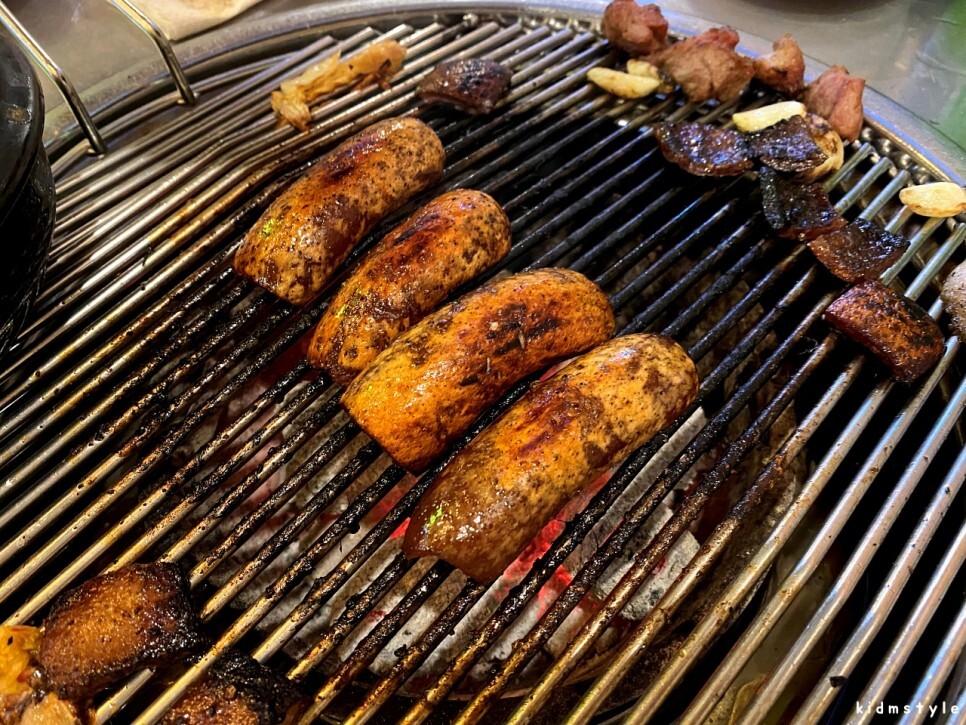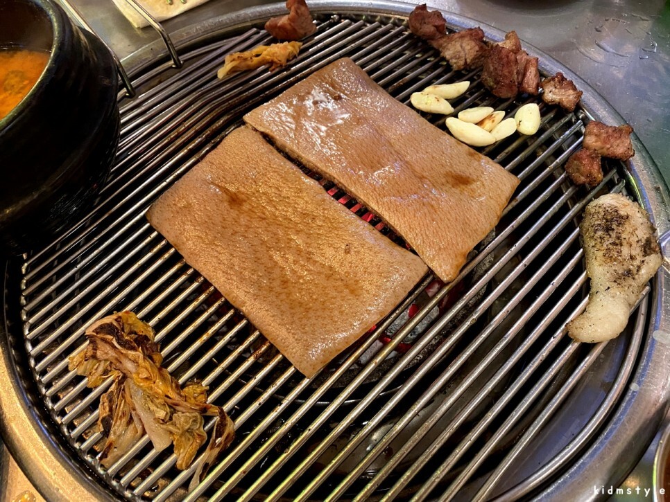 양념이 타기 때문에 불판은 금방 더러워지지만 껍데기는 바짝 구워서 먹어야 한다. 아주 맛있게 잘 익었다.