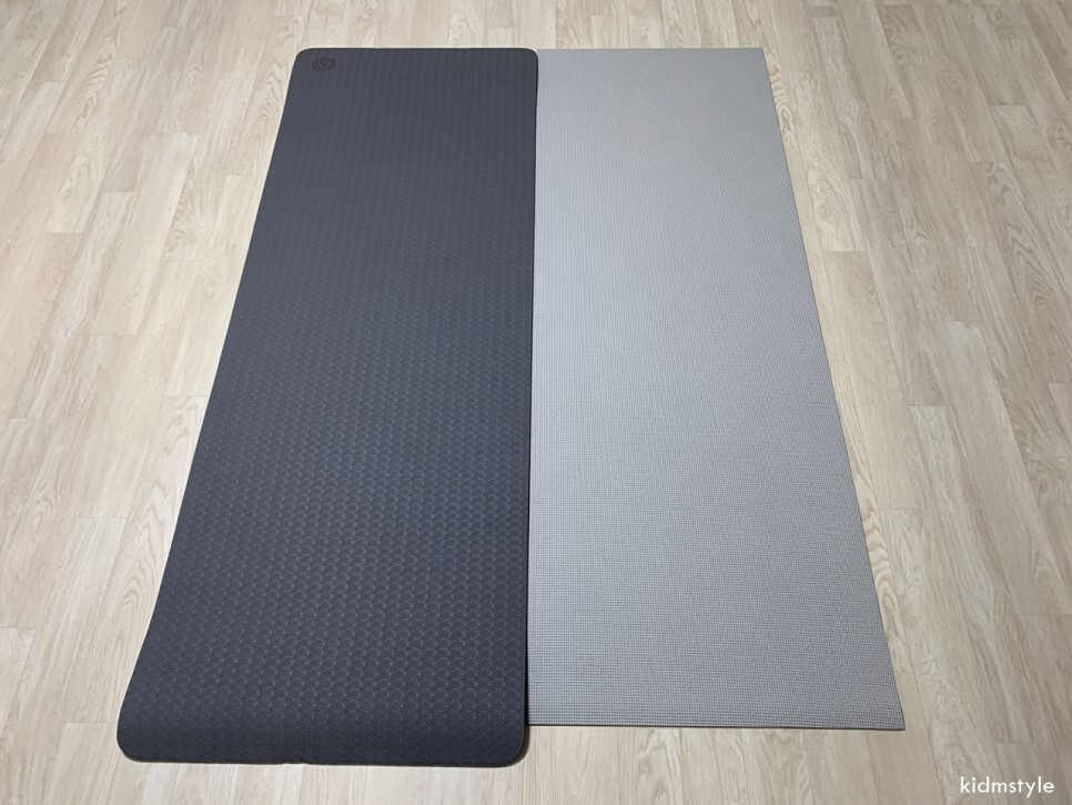 기존에 가지고 있던 다이소에서 구입한 5천 원짜리 요가매트와 비교입니다.