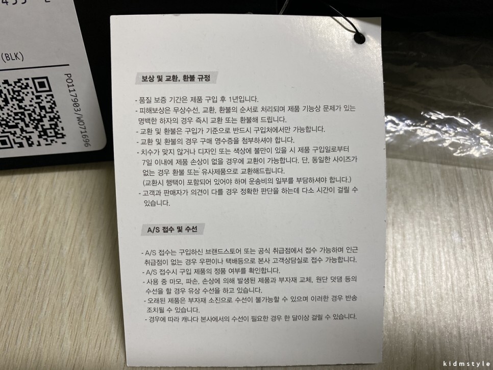 주광색 LED 조명 아래라 색상도 블랙 색상 그대로라 보면 된다.