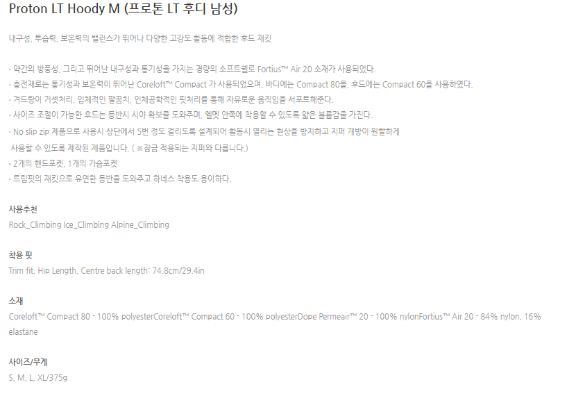 오늘 후기를 남길 제품은 아크테릭스의 프로톤 LT 후디라는 제품이다.