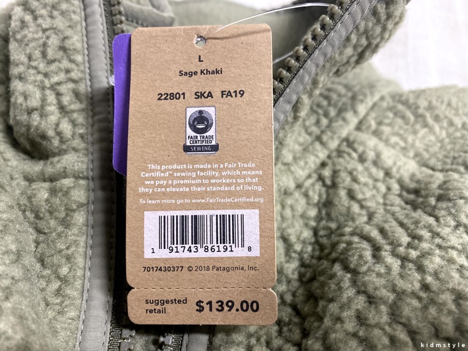 파타고니아 맨즈 레트로 파일 자켓 레귤러 핏이다. 이 택을 볼 때마다 설렌다. 참 웃기지만 그렇다. 다른 브랜드는 몰라도 파타고니아 택은 상자에 모아놓는다. 별 의미 없다. 어쩌다보니 그렇게 됐다. 그저 브랜드에 대한 애정이랄까? 그 정도로 해두자.
