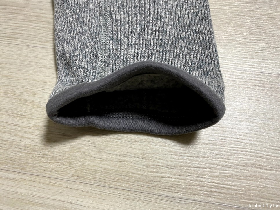 손끝은 목둘레와 같은 재질로 마감이 되어있다.