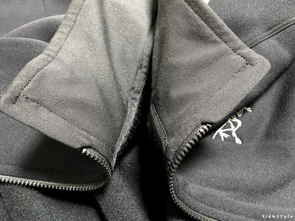 목부분 카라 끝에는 지퍼의 간섭을 받지 않도록