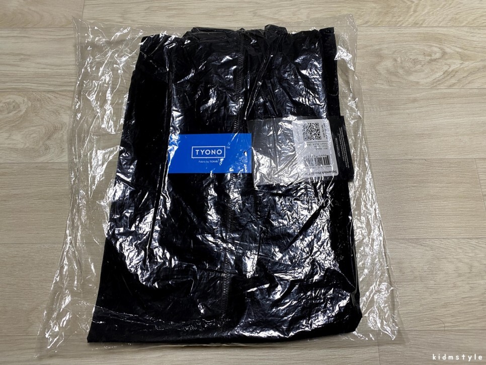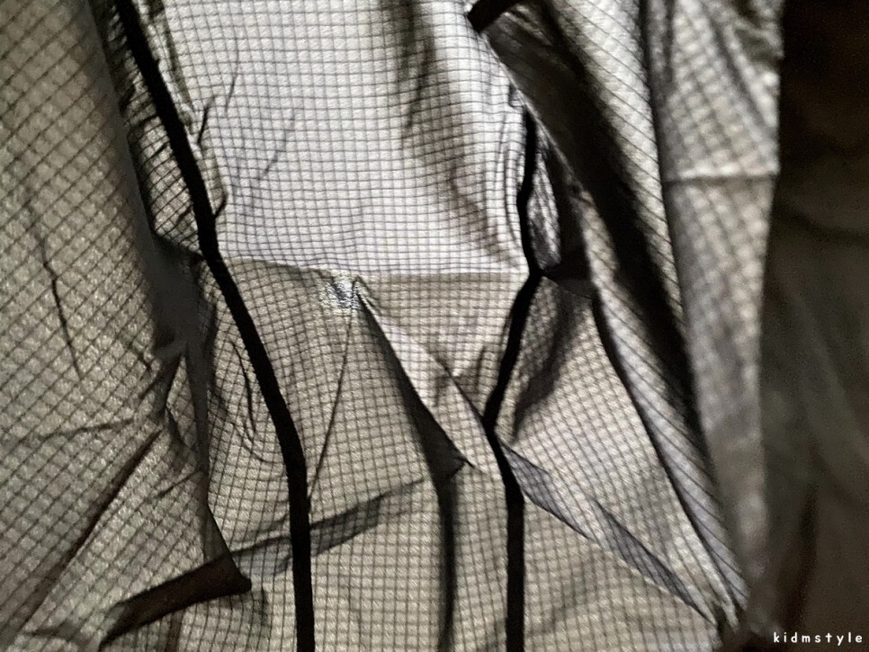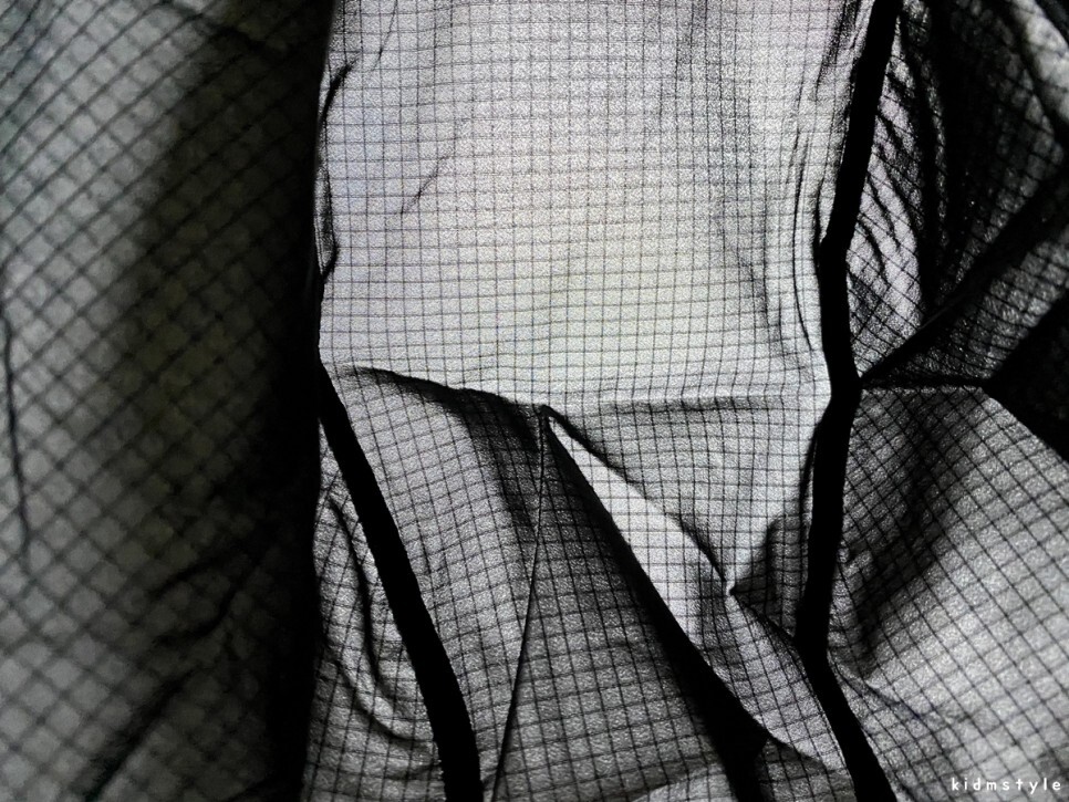 이 정도의 비침이 있는 상당히 얇은 바람막이이다.