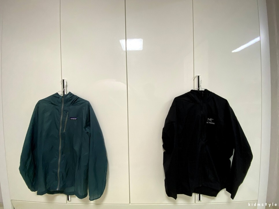 파타고니아 후디니와 같이 걸어놓고 비교해 본다.