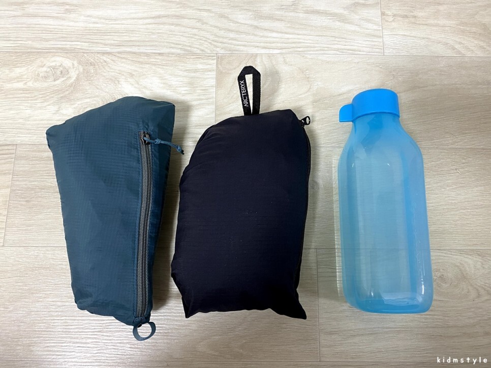왼쪽은 파타고니아 후디니를 말아 넣은 상태이고