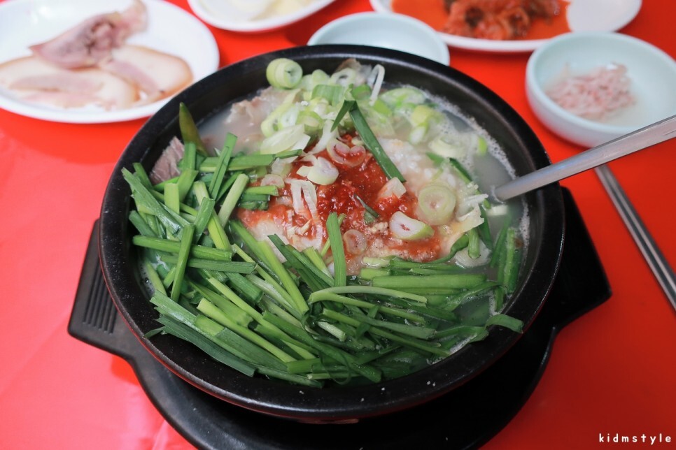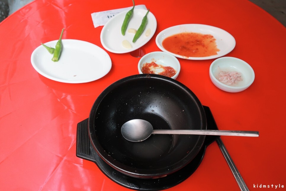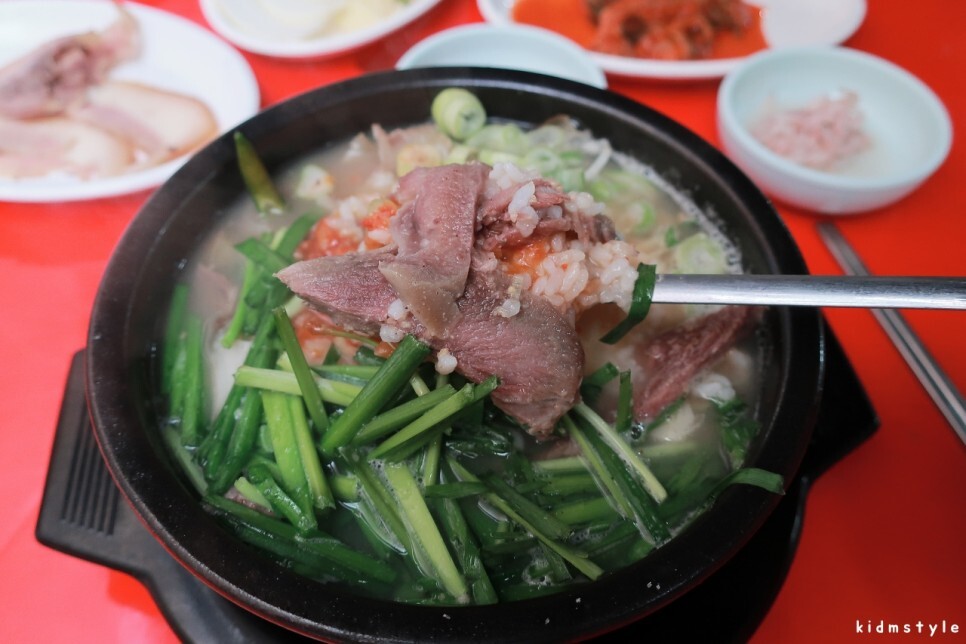 그리고 이 집 국밥의 특장점은 바로 국밥이 아주 매우 뜨겁다는 점이다. 다른 식당에서 맛보다 보면 토렴을 한답시고 국물이 미지근한 수준으로 나오는 경우가 많은데 아주 싫다. 최근 초량 우리돼지국밥에서 맛보았던 미지근한 국물은 너무 실망을 했던 기억이 난다. 한 여름이라 무슨 썸머 스페셜 이벤트로 미지근한 국물을 내주는 게 이벤트였나 싶을 정도였으니 말이다. 토렴을 하더라도 뜨끈하게 나오는 국밥이 많다.
