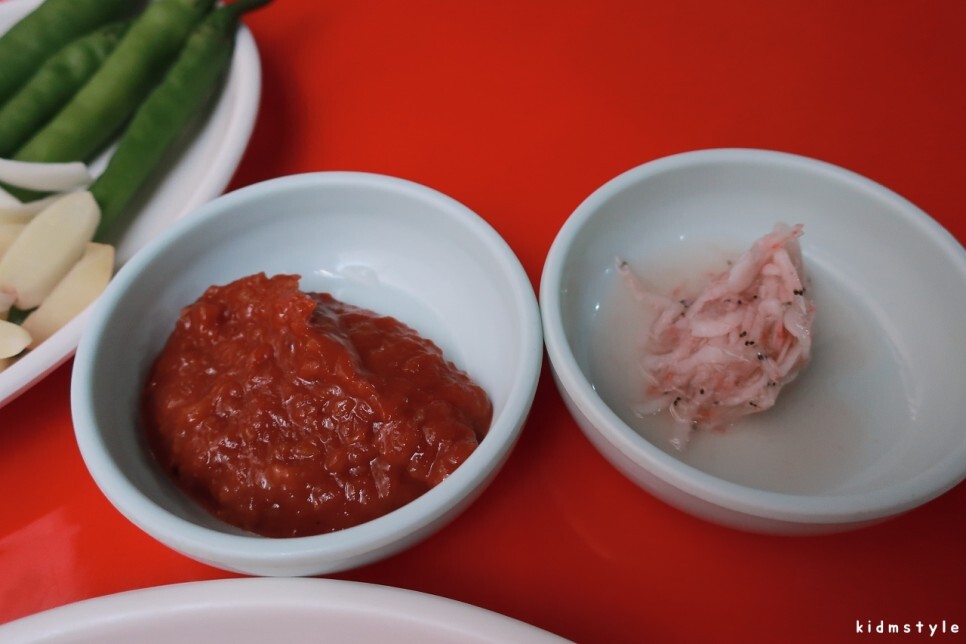 국밥에 빠질 수 없는 쌈장과 새우젓
