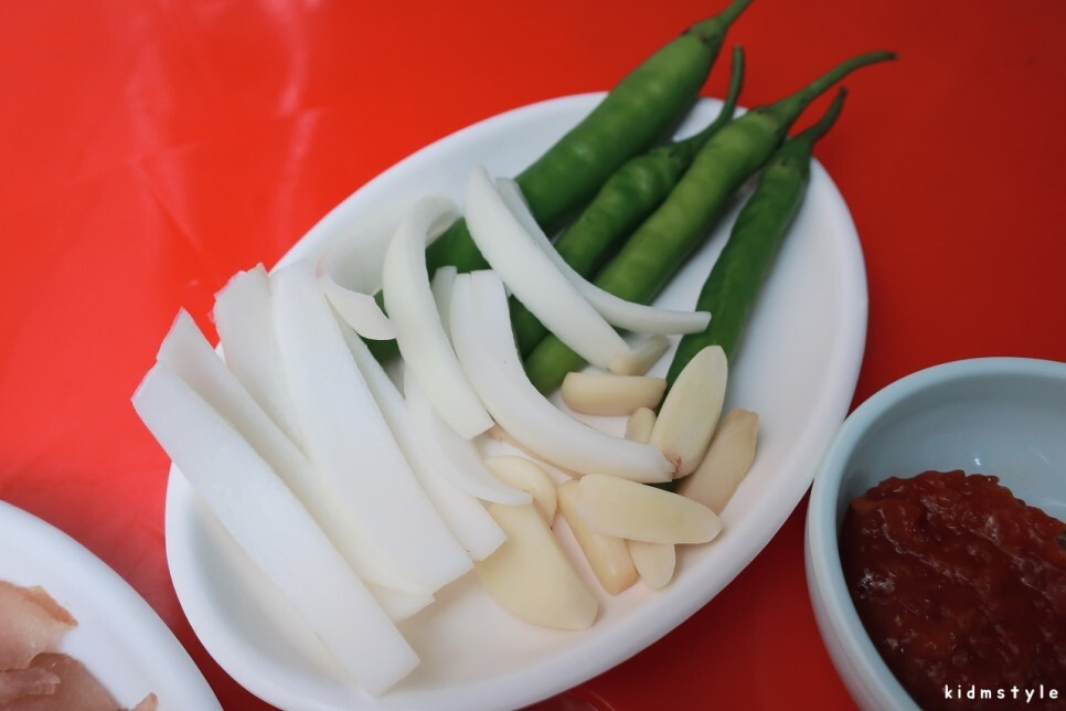 부추를 걷어보니 다대기만 보이는 것이 아니라 쌈장도 보인다. 부산 돼지국밥에 쌈장 양념이 들어가는 곳이 꽤 있다.