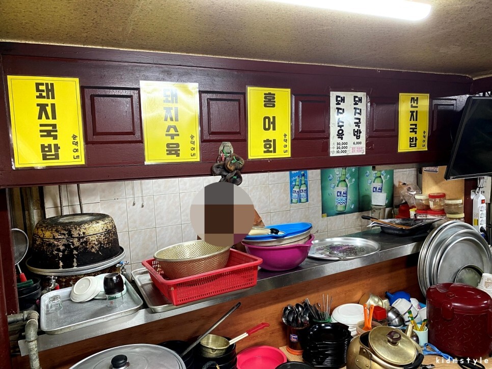 국물을 데우는 중이다. 사장님이 아주 친절하며 호탕하시다. 점심 장사를 하지 않고 저녁에 수육에 소주 한잔하는 술손님 위주로 영업한다고 귀띔해 주신다. 감래킹님 소개로 왔다고 하니 아주 반가워하신다.