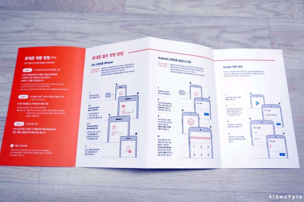 휴대폰 개통 가이드 리플릿이 들어가 있으니 익숙하지 않은 사람들은 개통 시 유심히 읽어보고 진행하기를 바란다.