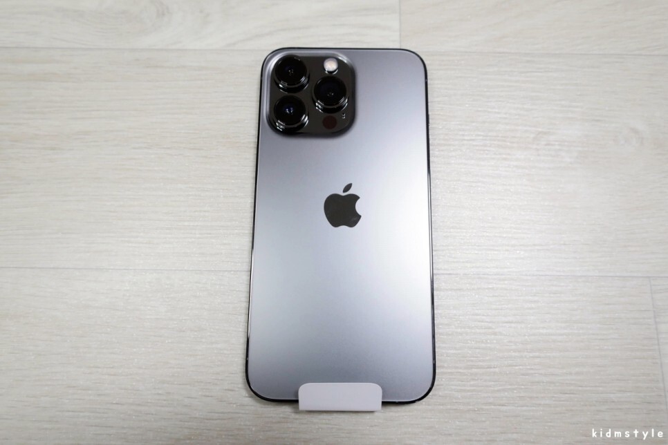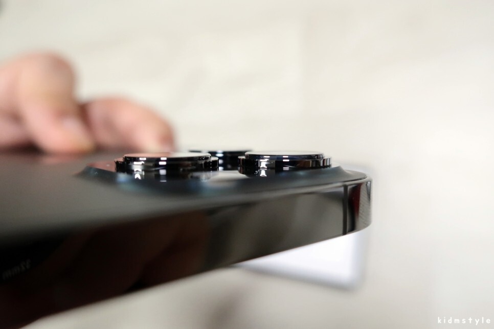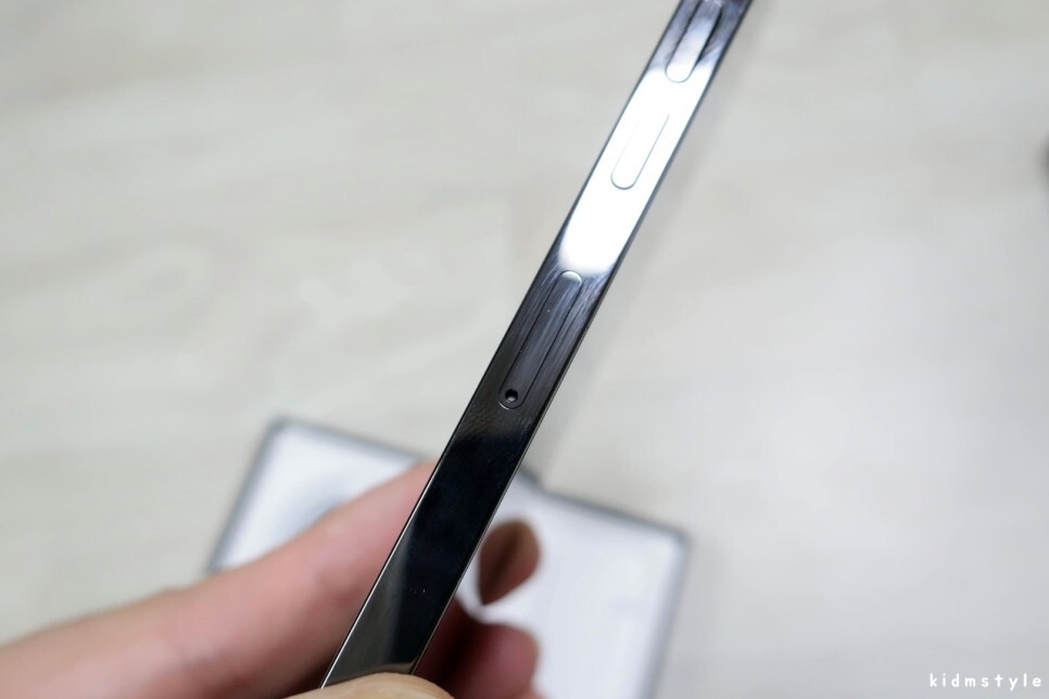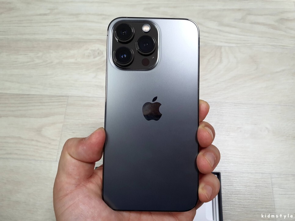 각진 옆모습을 보니 아이폰 4, 4s 시절의 깻잎통 디자인이 생각난다. 아이폰 13과 다르게 아이폰 13프로는 옆면이 유광 스테인리스 마감이라 지문이 잘 묻어난다.