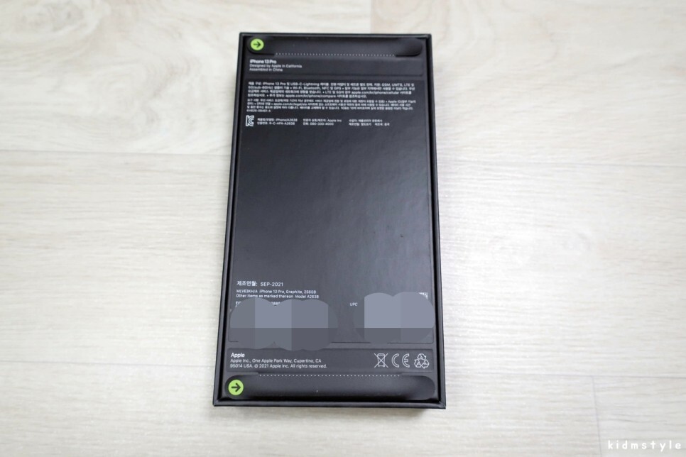 구입하면서 색상을 고민하였다. 아이폰 13프로의 시그니처 색상인 시에라 블루와 그라파이트를 고민하다가 결국 그라파이트로 구입하였다. 원래 나는 흰색 폰을 좋아했는데 언제부터인가 그레이 색이 마음에 들더라. 상자 아래쪽에 배송 분류를 위한 스티커가 붙어있는데 잘 제거된다. 뗐다.