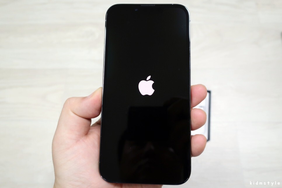 본격적으로 사과 로고 보면서 개통 시작한다.