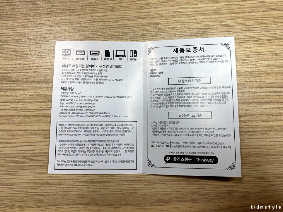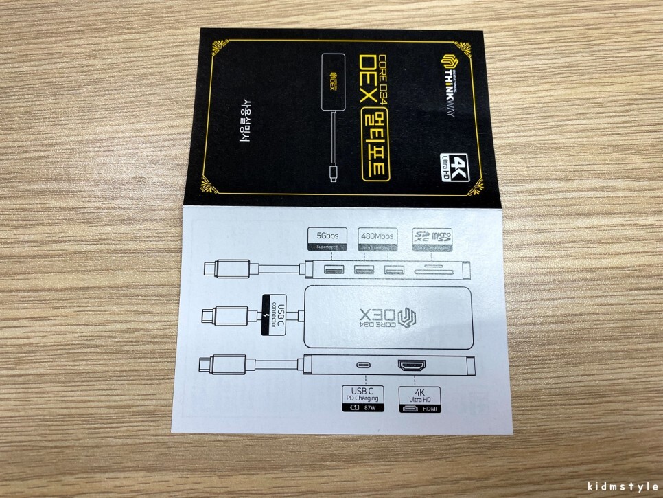 제품명은 씽크웨이 core d34 dex 7in1 HDMI 멀티포트 허브이다.