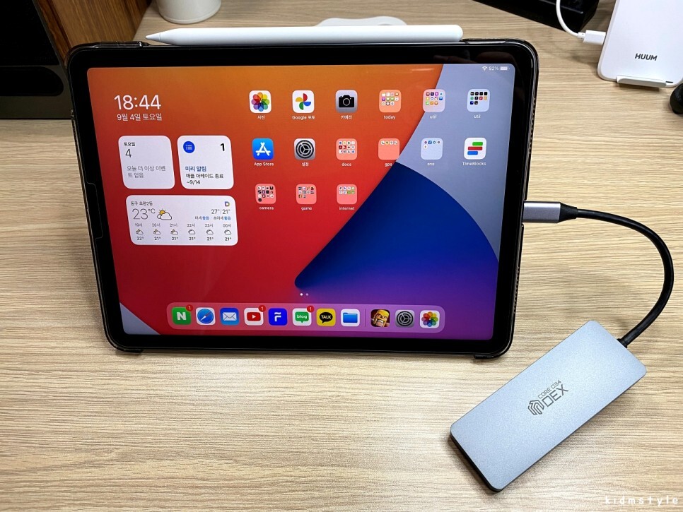 아이패드 에어 4세대에 연결한 모습